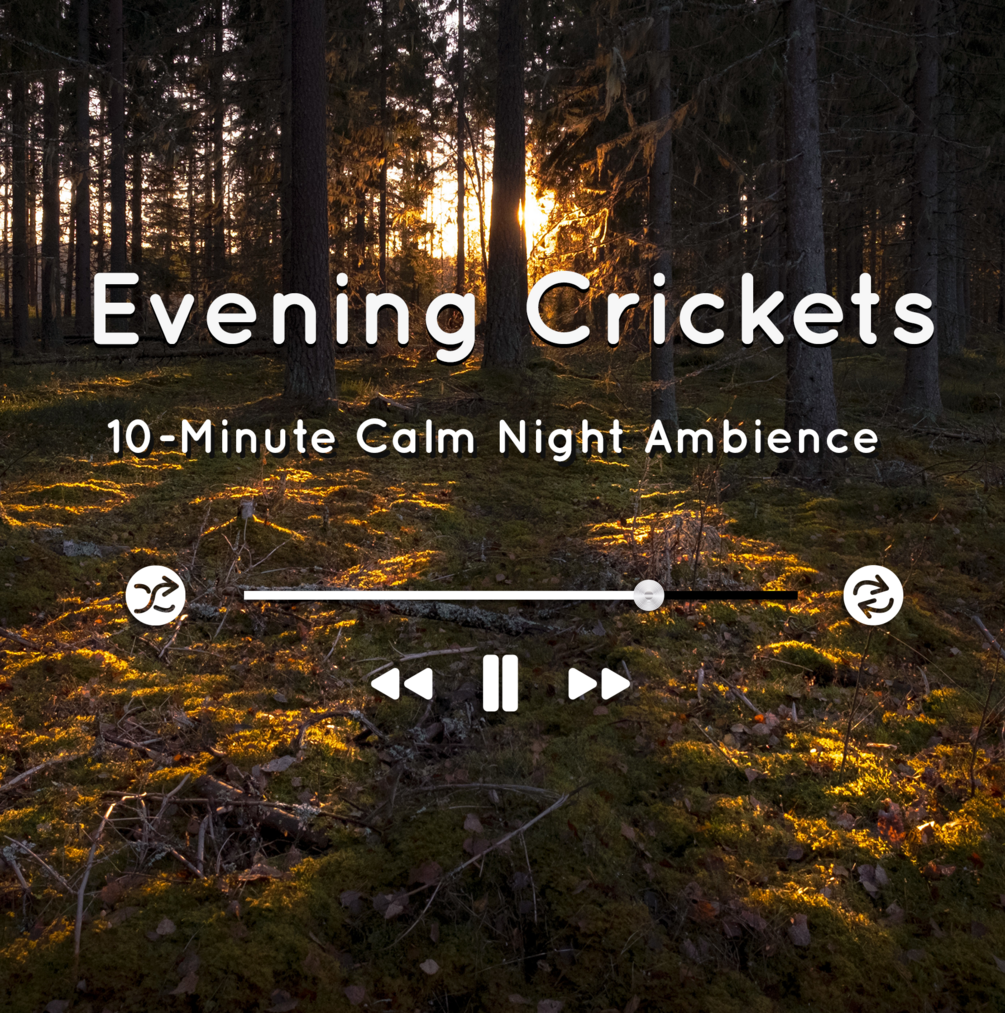 Evening Crickets – 10-Minute Calm Night Ambience is a seamless, loopable nature sound designed to soothe your mind and body. Perfect for sleep, meditation, or creating a peaceful nighttime atmosphere at home or in your content.